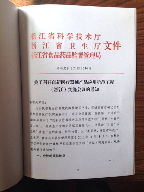 近日,我司產品“可吸收止血結扎夾”被列入全國試點省份浙江省第一批創新醫療器械產品應用示范工程(簡稱:“十百千萬工程”)。
